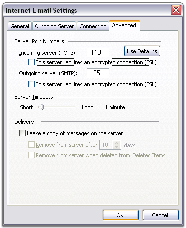 - Ensure that Incoming Server is 110 and under 'Outgoing Server (SMTP),' the default is '25' in the
